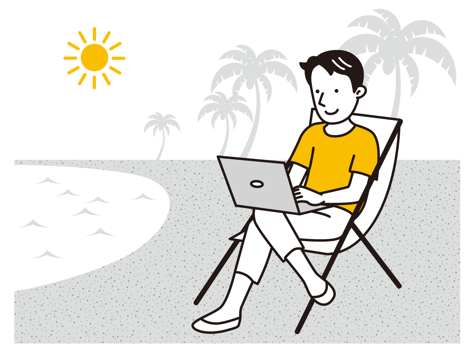 – 場所も時間も人間関係からも開放されて、自由を手に入れることができます。