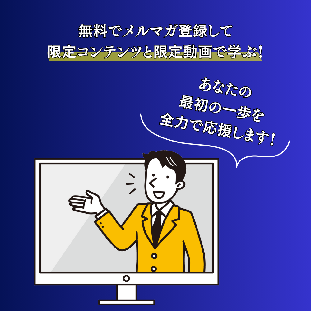 – 業界TOPレベルの講師がゴールから緻密に逆算して作った内容です。ぜひ、お気軽にメルマガから学べるテキストや動画を見聞きしてください。